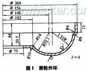 我廠生產(chǎn)的YJH256液力變矩器泵輪外環(huán)(見圖1),就屬于此種類型零件,為適應(yīng)生產(chǎn)需要,設(shè)計(jì)了如圖2所示的拉深模具。