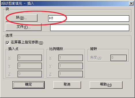 1、畫(huà)好填充內(nèi)容,做成塊,本例的塊名是“h1”